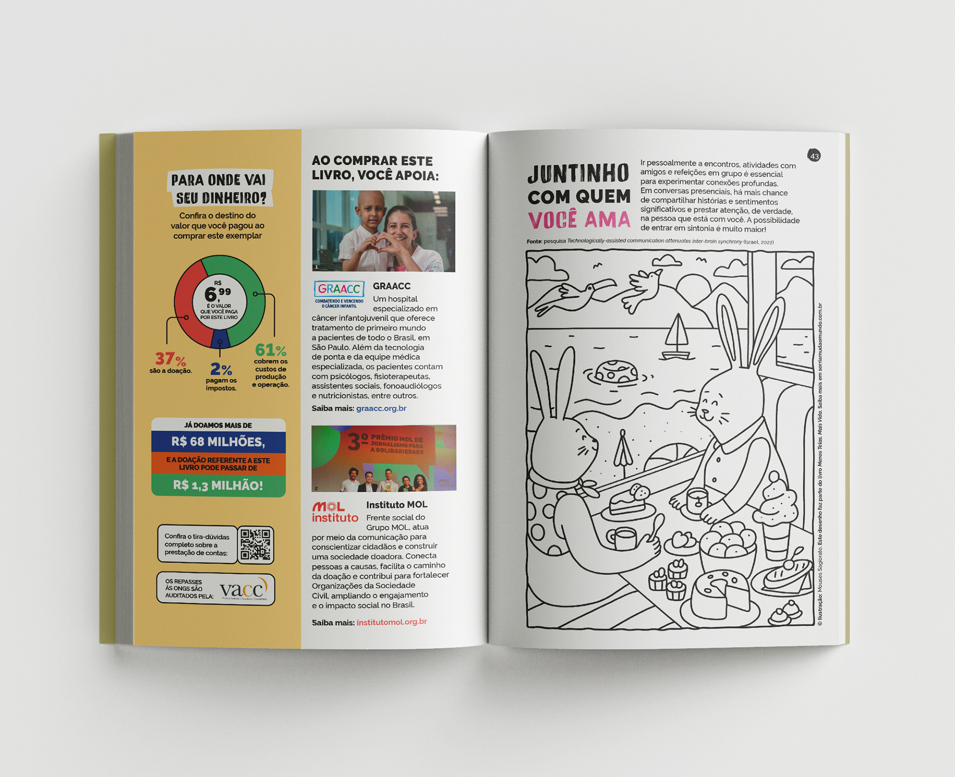 Ilustrações para a revista "Menos telas, mais vida", produzida pela Mol Impacto e distribuída pelas redes Raia e Drogasil.