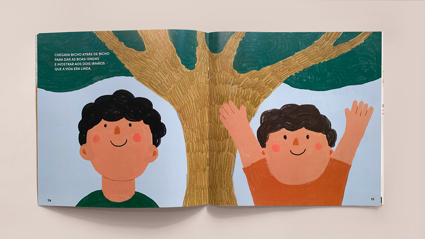 Published by Amélie Editorial, 2025. Through the eyes of these two little brothers, this book talks about adoption. illustrations by Mouses Sagiorato.